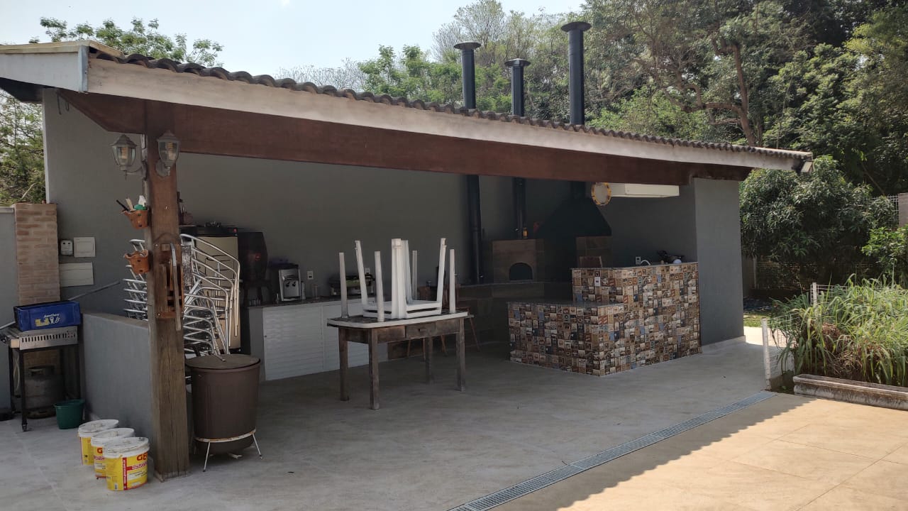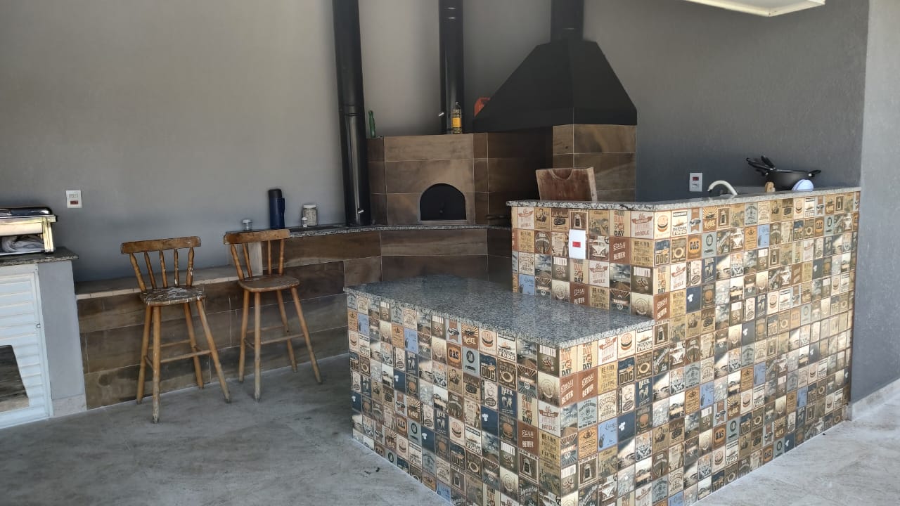 Área de churrasqueira com banheiro anexo, pronta para confraternizações